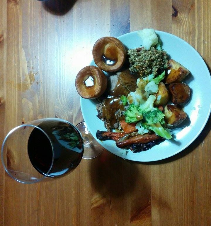 Weekend minął też pod znakiem dobrego jedzenia. W sobotę Gosia przyszykowała nam faszerowane bakłażany w ilościach wojskowych (żeby wystarczyło na lunch w poniedziałek), a w niedzielę Rich podjął się przygotowania prawdziwej angielskiej pieczonej kolacji. I poszły pieczone i gotowane warzywa, sosik, nadzienie i ponad kilogram pieczonego schabu. Pyszne!