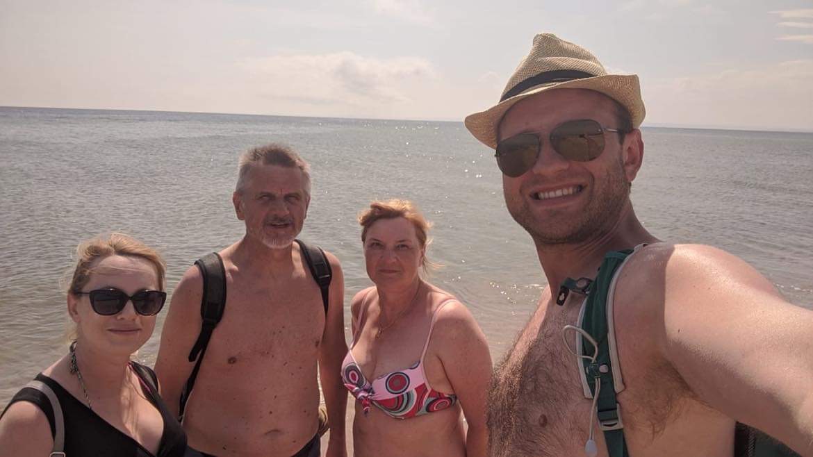 W międzyczasie kopania świętowaliśmy dzień ojca i jego sześćdziesiątkę. Śmiesznie trochę, bo on na koparce, a ja przy wywrotce.