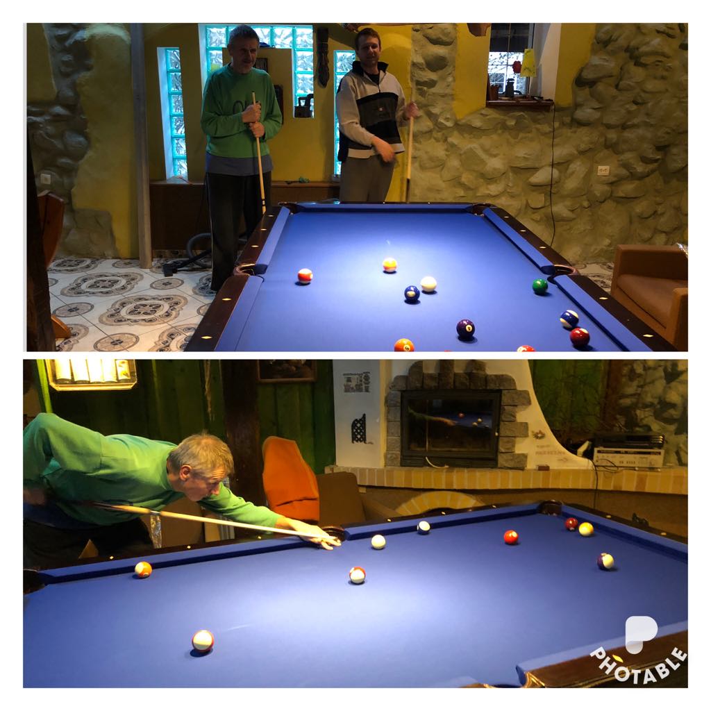 Po powrocie przywitaliśmy się z Miłoszem i Olą, którzy wpadli na odwiedziny weekendowe, a wieczorem uroczyście zainaugurowaliśmy stół bilardowy. Bile się błyszczą, płótno piękne, aż przyjemnie się gra :)